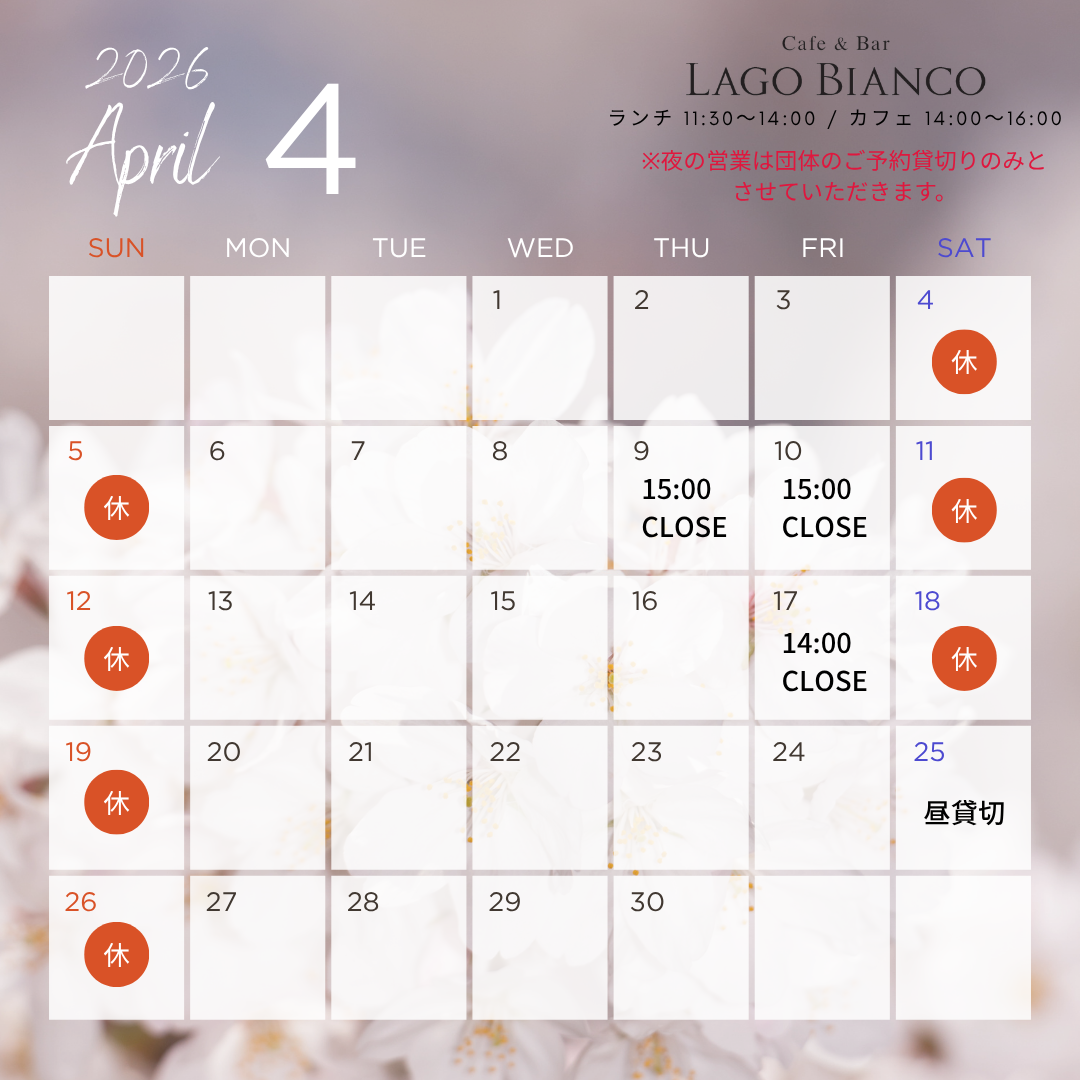 【小松駅前店4月営業日のおしらせ】